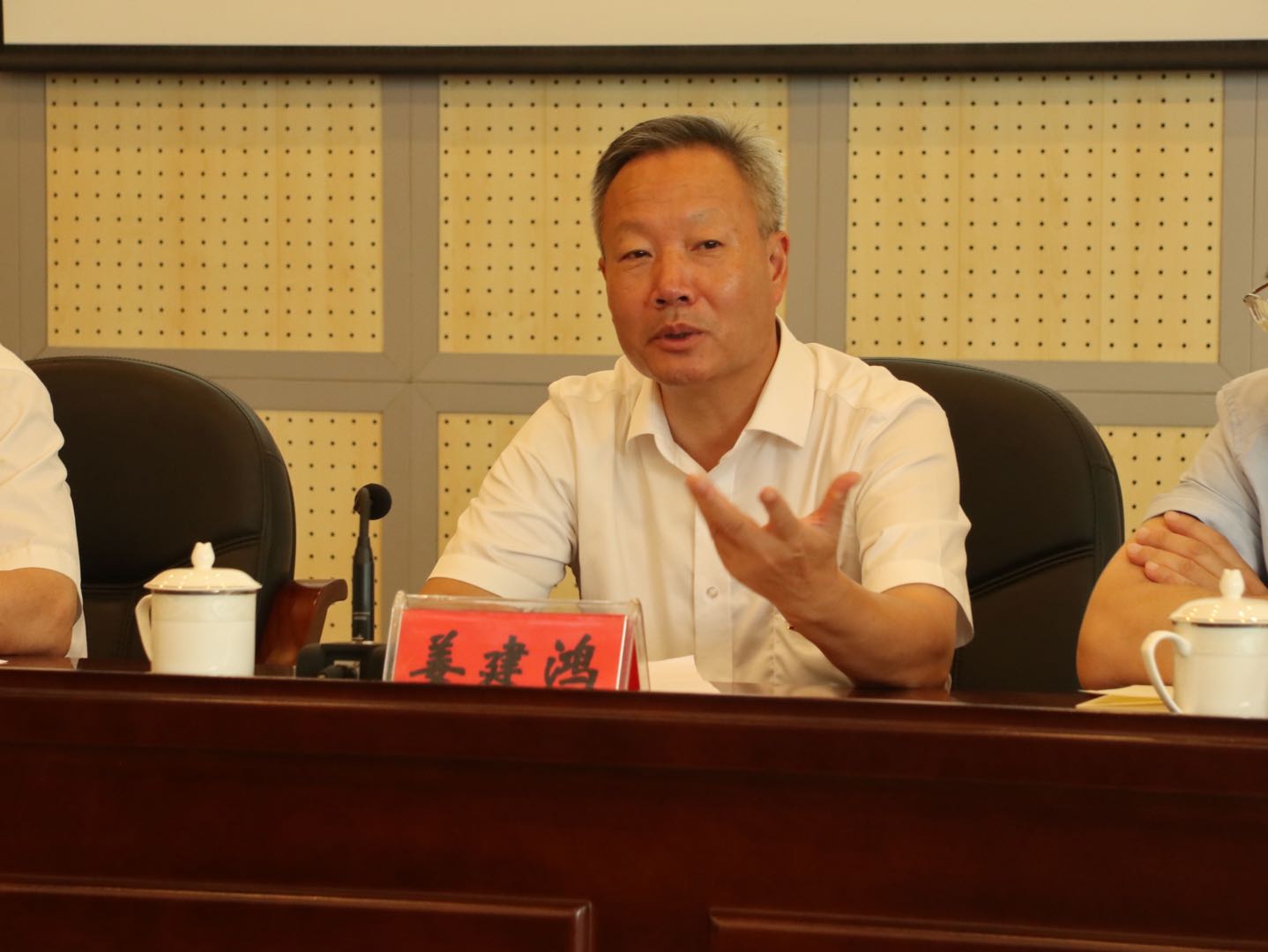 姜建鸿对开展好主题教育提出四点要求:一是要加强学习教育,认认真真学原著悟原理,将学习贯彻始终,推动学习贯彻习近平新时代中国特色社会主义思想往深里走、往心里走、往实里走;二是要深入调查研究,围绕为党育人、为国育才,紧扣立德树人根本任务,聚焦学校中心工作和重点任务,聚焦师生反映强烈的热点难点问题,深入教学一线和广大师生之中,沉下去了解民意、掌握实情,拿出破解难题的办法举措,切实把工作落到实处;三是要深刻检视问题,通过广泛听取意见、认真检视反思、召开专题民主(组织)生活会等,坚持边学习、边调研、边找问题,对照习近平新时代中国特色社会主义思想和中央部署、省委要求,对照党章党规,对照初心使命,查摆自身不足,查找工作短板,深刻检视剖析;四是要狠抓整改落实,要突出主题教育的实践性,把“改”字贯穿主题教育全过程,坚持立查立改、即知即改。