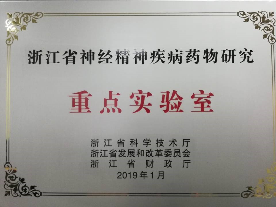 浙江省神经精神疾病药物研究重点实验室(以下简称重点实验室),于2018 年10月获准成立,由浙江省科技厅、浙江省发展和改革委员会 和浙江省财政厅共同授牌。