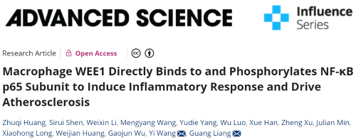 2025年4月9日,日韩欧美福利视频_黑人巨大人精品欧美三区_欧美成人另类人妖_欧美在线精品一区二区三区_欧美一区二区三区性视频_日韩精品欧美视频_性欧美极品xxxx欧美一区二区梁广研究员与合作者在国际权威期刊《Advanced Science》(中科院一区,IF=14.3)上在线发表了题为“Macrophage WEE1 Directly Binds to and Phosphorylates NF-κB p65 Subunit to Induce Inflammatory Response and Drive Atherosclerosis”的研究论文。