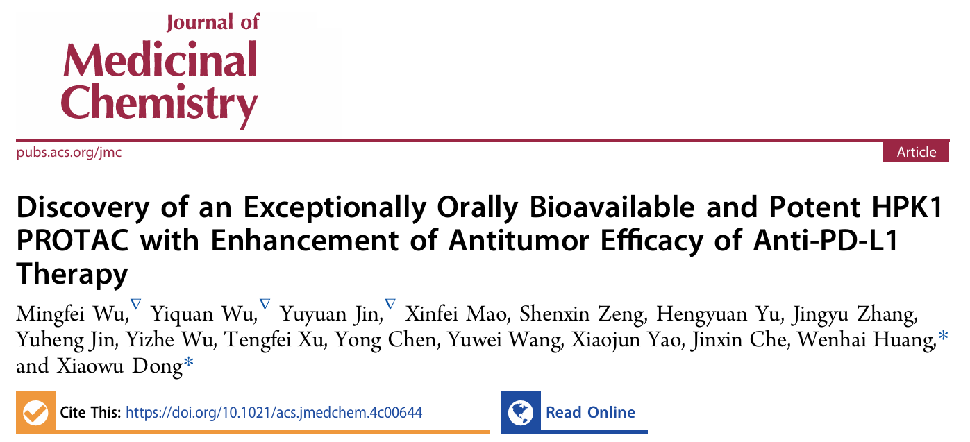 近日,日韩欧美福利视频_黑人巨大人精品欧美三区_欧美成人另类人妖_欧美在线精品一区二区三区_欧美一区二区三区性视频_日韩精品欧美视频_性欧美极品xxxx欧美一区二区黄文海团队与浙江大学董晓武团队合作在药物化学领域权威期刊《Journal of Medicinal Chemistry》杂志(中科院一区TOP)在线发表了题为“Discovery of an Exceptionally Orally Bioavailable and Potent HPK1 PROTAC with Enhancement of Antitumor Efficacy of Anti-PD-L1 Therapy”的研究论文。