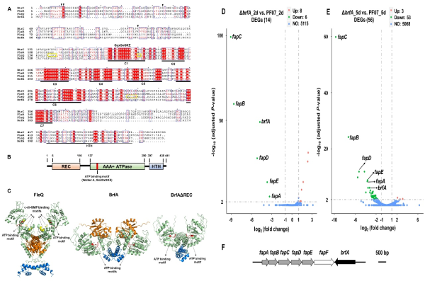 图1. BrfA结构预测及对fap基因簇的调控作用