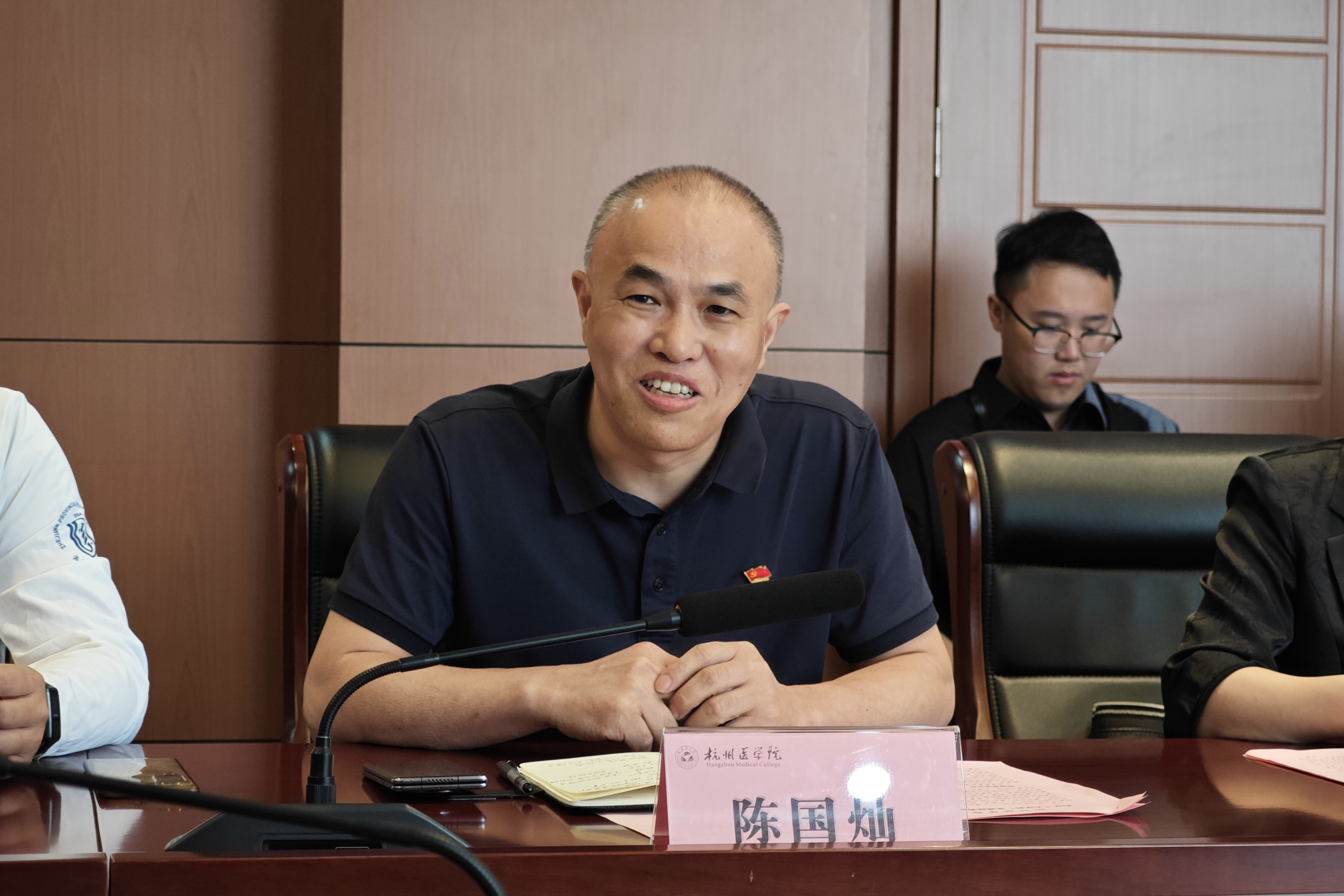 校长、药学学科带头人梁广首先发表致辞。他指出,药学学科是健康中国战略的重要组成部分,学校药学“大学科”党建联盟的成立,是切实推动党建与业务深度融合的关键举措和有效路径,希望联盟能建设成为具有杭医辨识度的新时代党建与学科互融共促的标杆示范。他强调,联盟今后一要筑牢思想根基,在党建引领中凝聚力量。要把习近平新时代中国特色社会主义思想作为根本遵循,坚持立德树人根本任务;二要聚焦学科使命,在交叉融合中增强动能。药学“大学科”建设是一项系统工程,需要多学科、多平台共同发力,努力推出一批标志性科研成果,提升我校药学学科的竞争力和影响力,助力浙江“315”科技创新体系建设;三要强化育人导向,在协同共育中培育人才。通过思想引领,深化“双链融合、三方协同”的育人模式,培养一批政治坚定、学术精湛、业务过硬的药学人才。